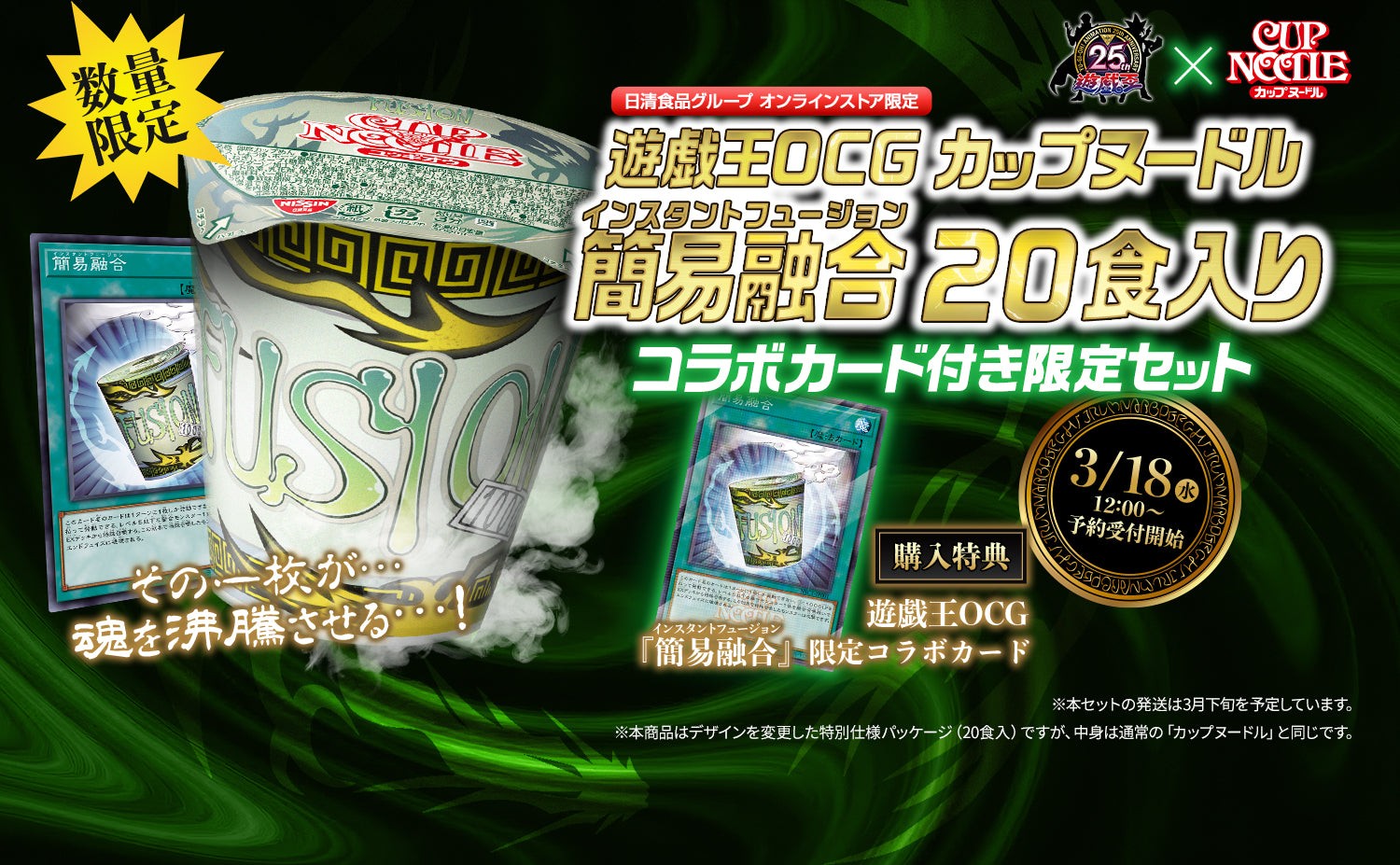遊戯王 日清カップヌードルとコラボで簡易融合デザインでコラボセット発売!インスタントフュージョン入り!
