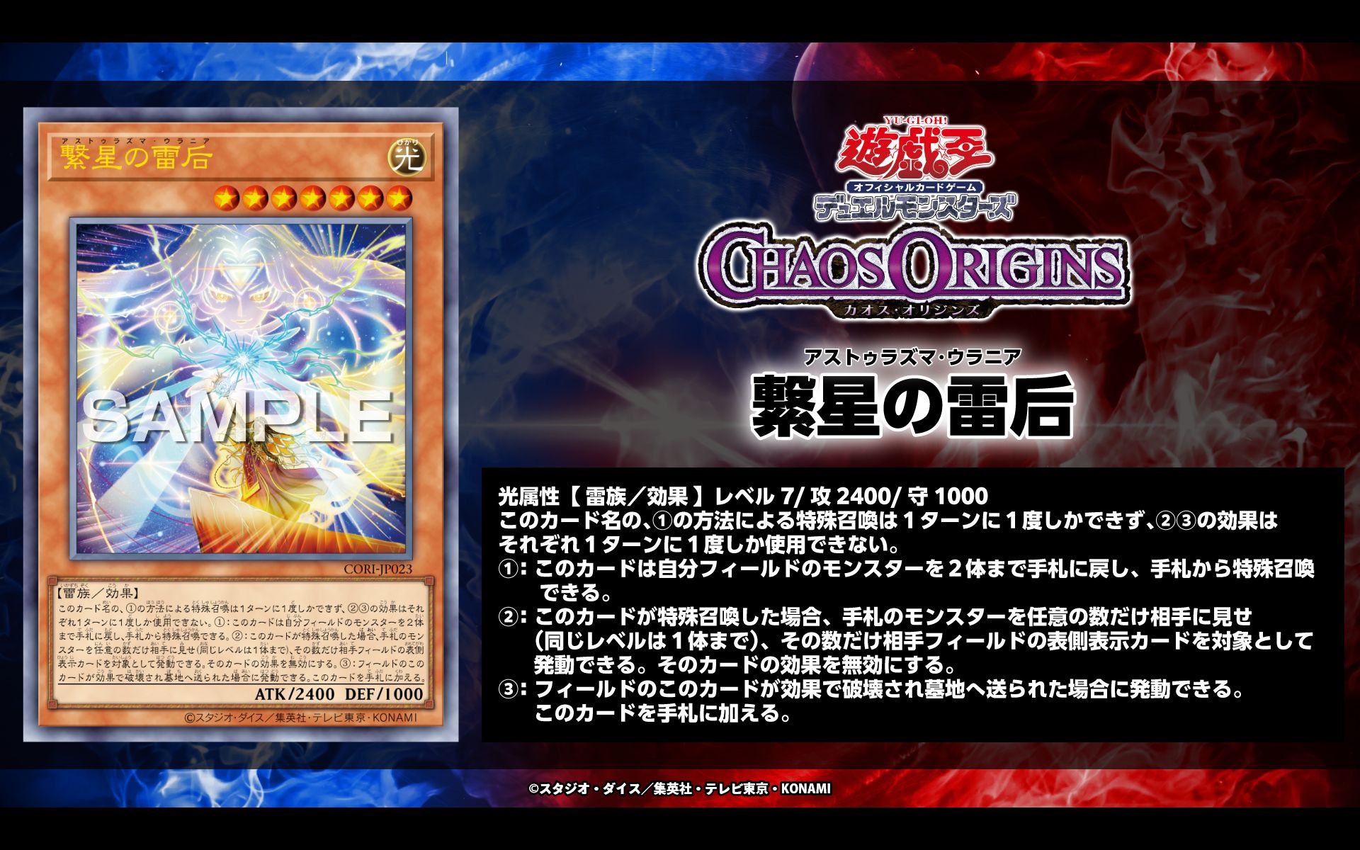 遊戯王最新情報 カオス・オリジンズ「繋星の雷后(アストゥラズマ・ウラニア)」が新規判明!
