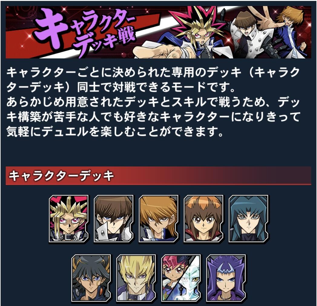 【遊戯王デュエルリンクス】「キャラクターデッキ」で使用可能なカード等の更新について