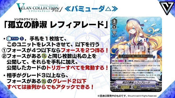 【VG】「Vクランコレクション Vol.1」収録「孤立の静寂 レフィアレード」ほかバミューダ△関連カードテキスト公開!