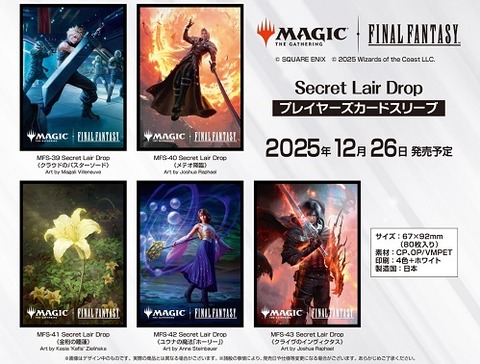 クラウドのバスターソード、メテオ降臨、金粉の睡蓮、ユウナの魔法「ホーリー」、クライヴのインヴィクタス スリーブ 予約が始まっています!Secret Lair Drop