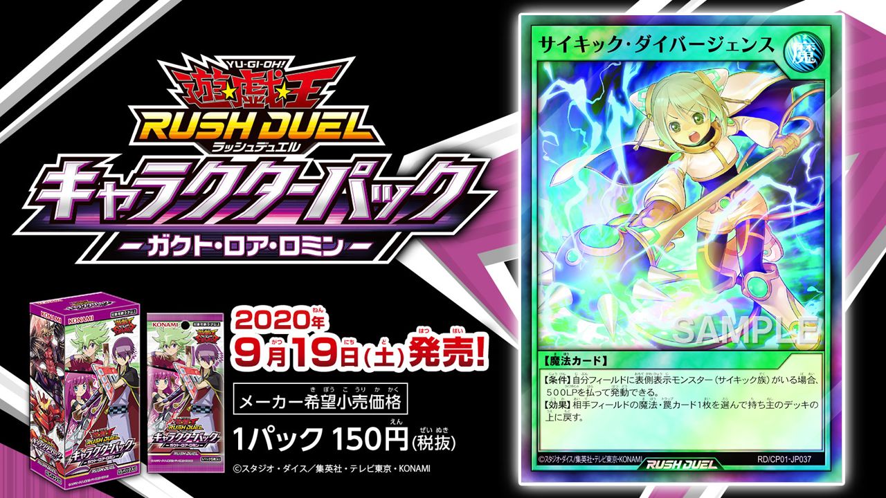 遊戯王ラッシュデュエル キャラクターパックーガクト・ロア・ロミンー「サイキック・ダイバージェンス」「激唱デモンズロック」「不許始末戦士」等が判明!