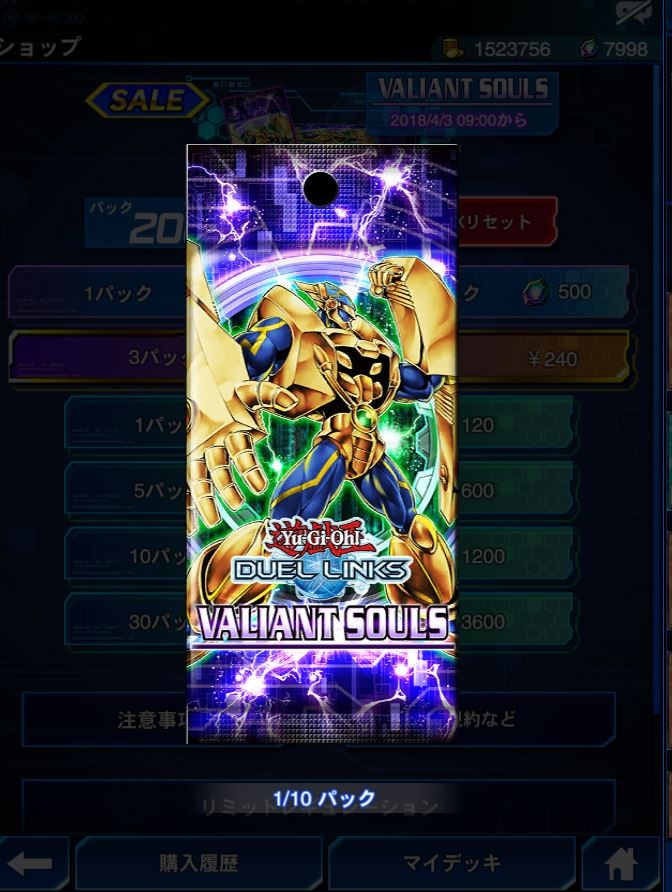 遊戯王デュエルリンクス ヴァリアント・ソウル開封結果